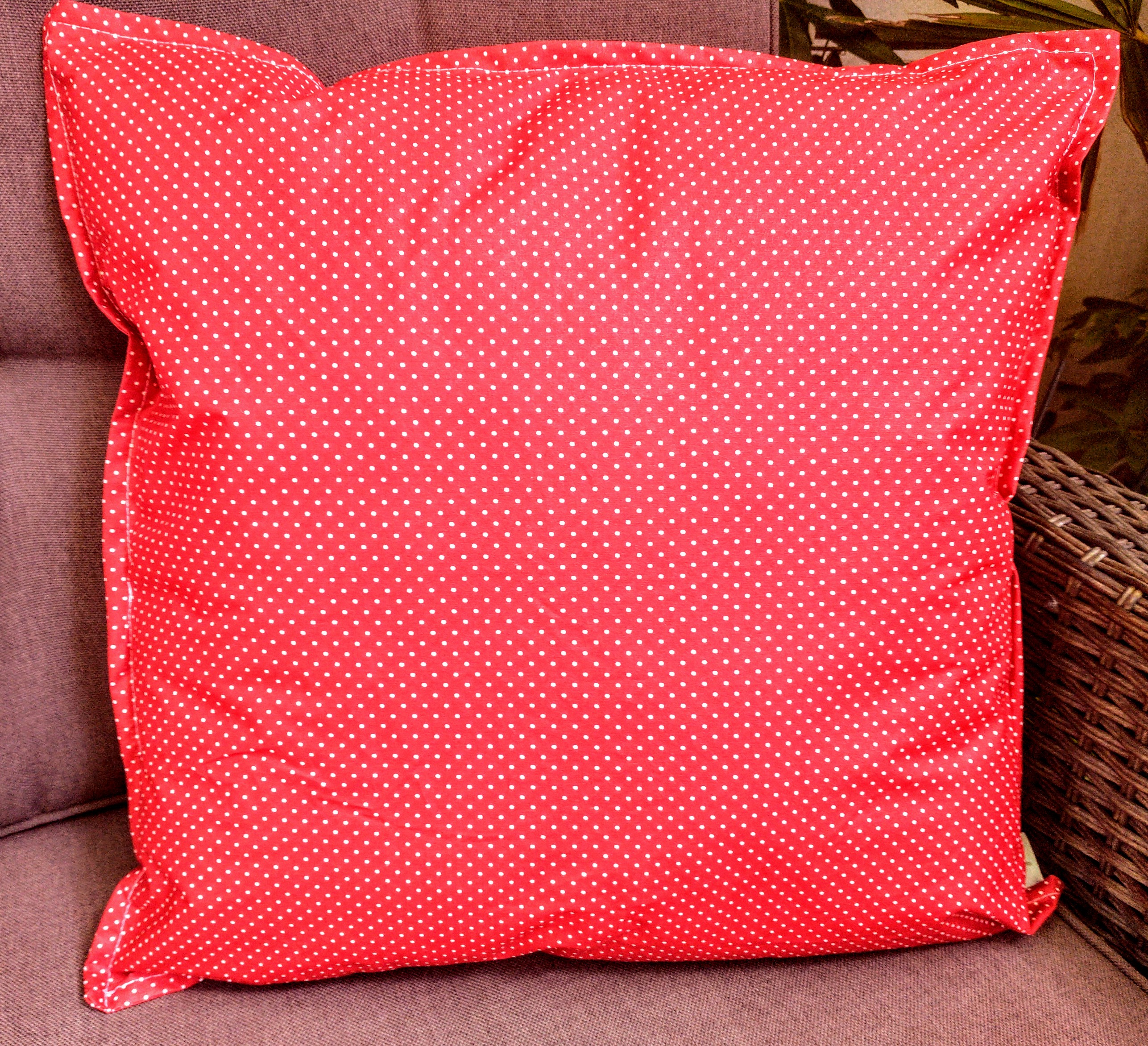 Outdookissen beschichtete Baumwolle rot weiße Punkte